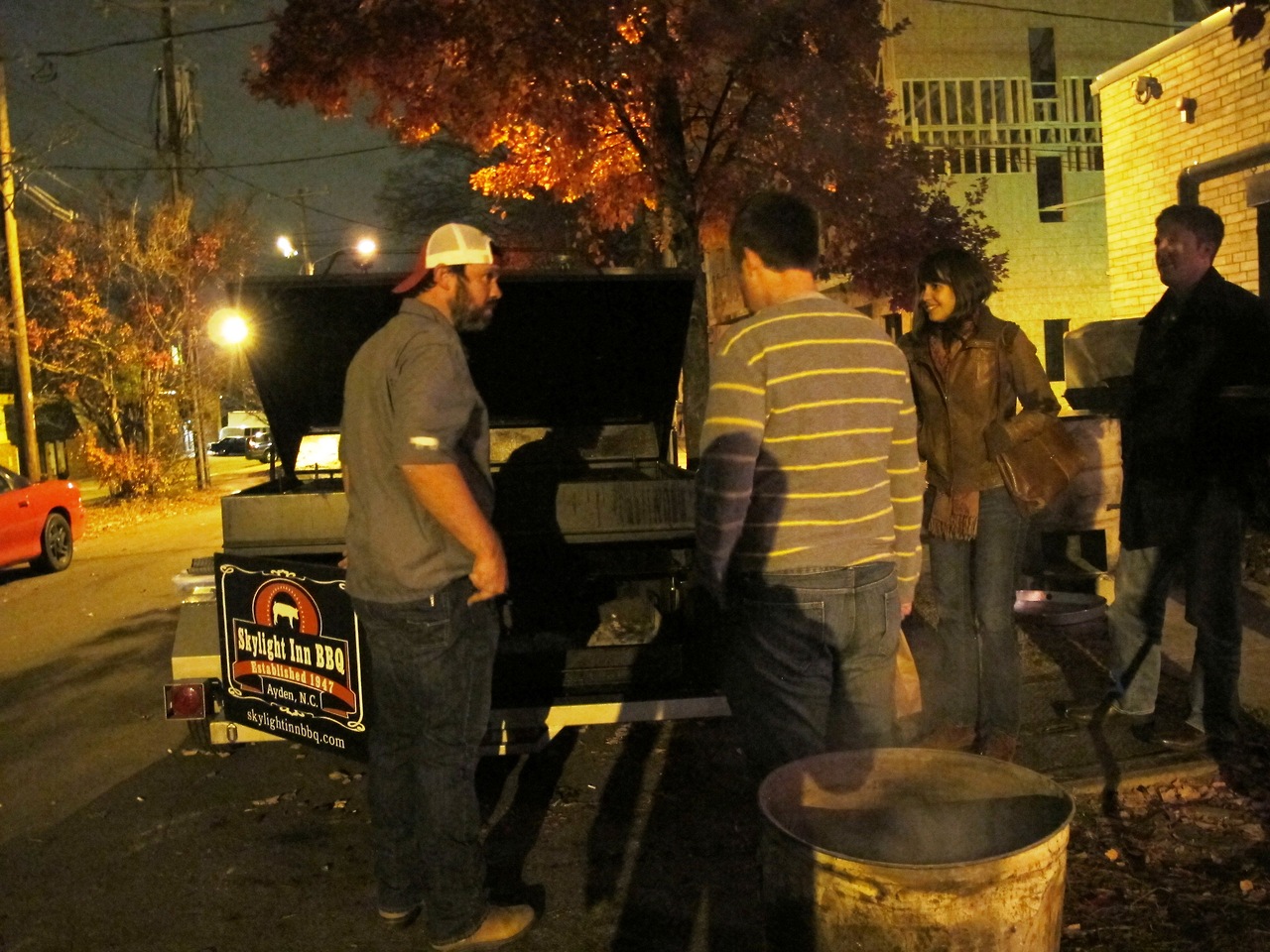Monk: Barbecue lovers flocked to Midwood Smokehouse in Charlotte on November 20 for a four course “Southern ‘Cue Supper” where special guest Sam Jones of the Skylight Inn in Ayden, NC was serving up eastern North Carolina, whole hog barbecue. Having been raised in the Piedmont, Speedy and I were not familiar with the actual barbecue from the world famous Skylight Inn, but we knew the name and understood it’s importance. Sam Jones’s family has been cooking barbecue in eastern North Carolina for 175 years, so clearly he is going to know a thing or two about cooking a whole hog.