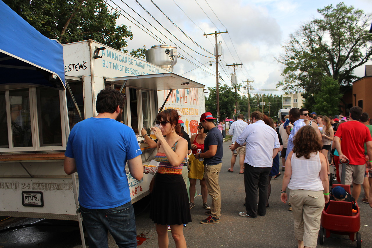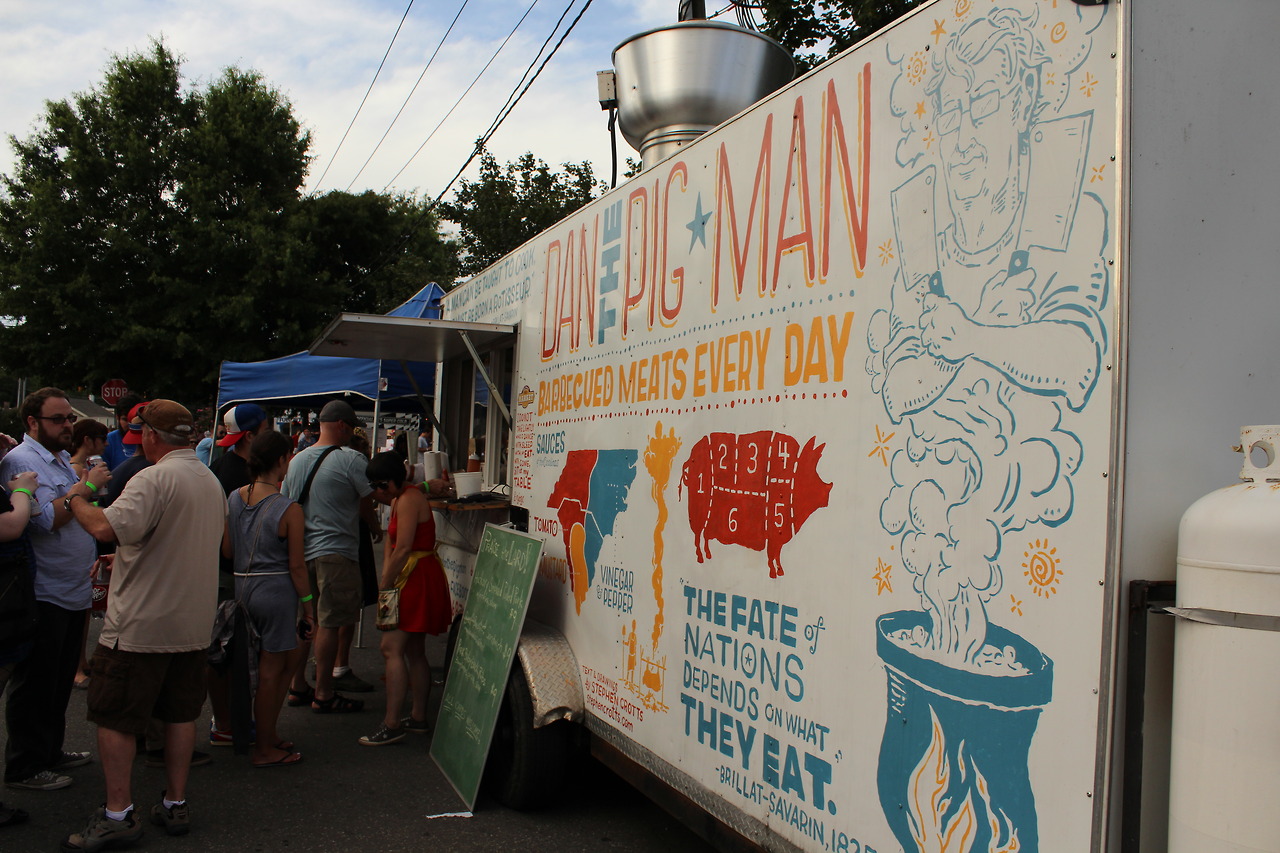 Some photos from the 12th Annual Plaza Midwood Pig Pick’n yesterday on July 4th, where we stopped in briefly on our way to watch the fireworks uptown. I didn’t get any pig from former Charlotte Observer reporter/columnist Dan the Pig Man‘s food truck but everything smelled quite good and there was a sizable line the entire time we were there. Maybe next year…