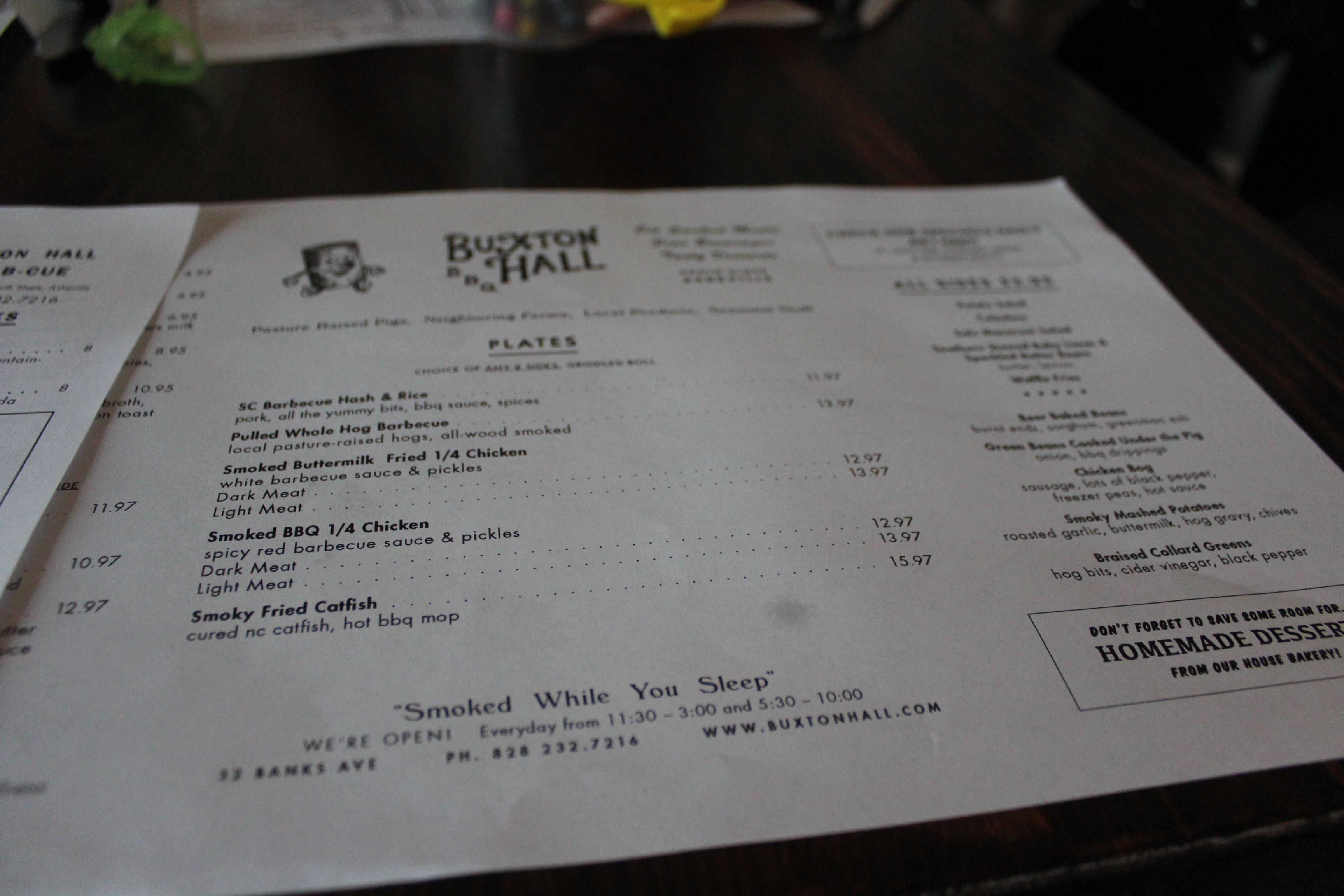 Monk: I’ve been following Pitmaster Elliot Moss’s pursuit to open a whole hog barbecue joint for what seems like most of the life of this blog (4+ years). What was initially announced as Buxton Hill Barbecue with one business partner later turned into a venture with another called Buxton Hall Barbecue. As I understand it, throughout the journey bringing whole hog barbecue to Asheville remained the focus, and it finally opened in Asheville’s booming South Slope neighborhood (literally heading south downhill from downtown) last August.