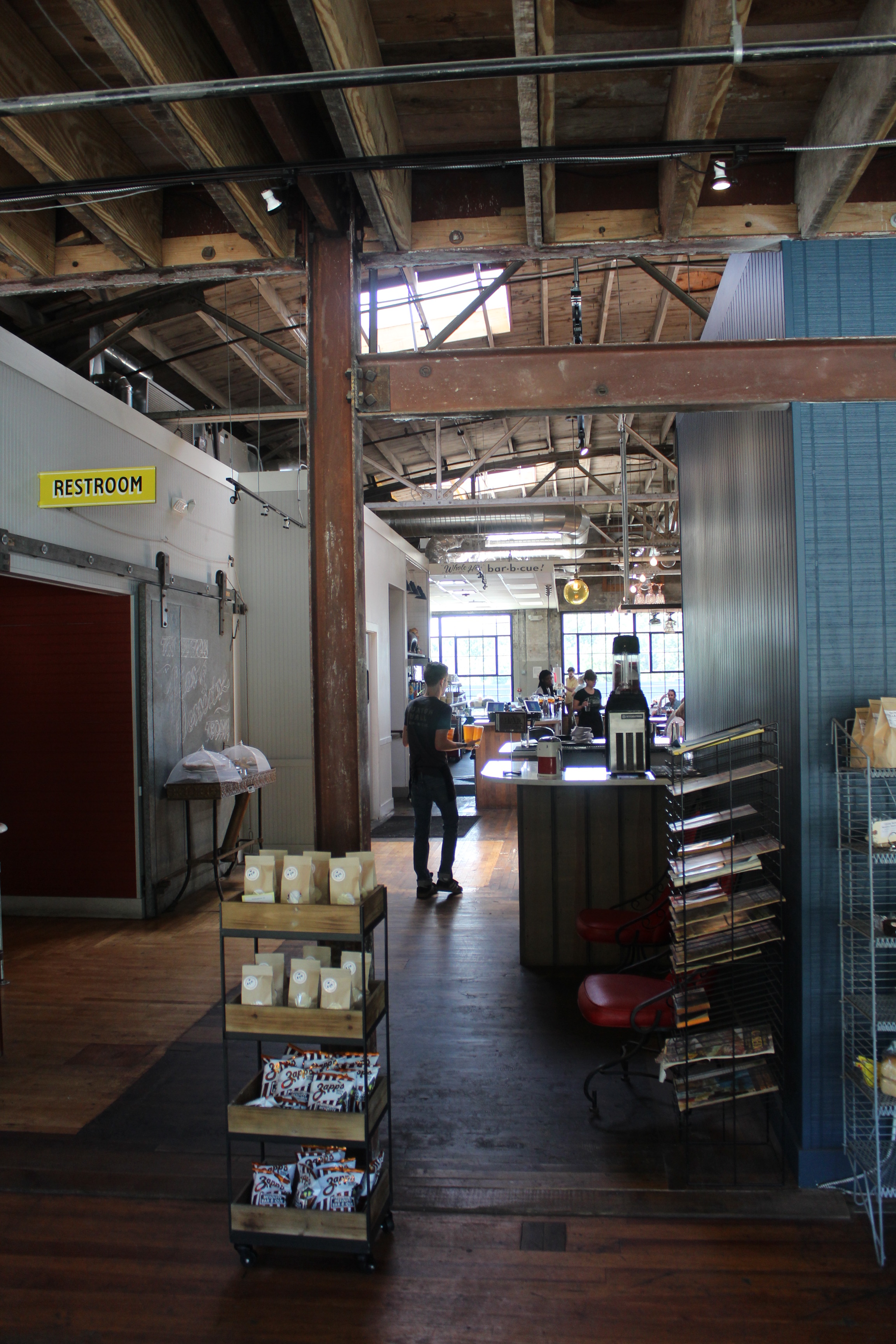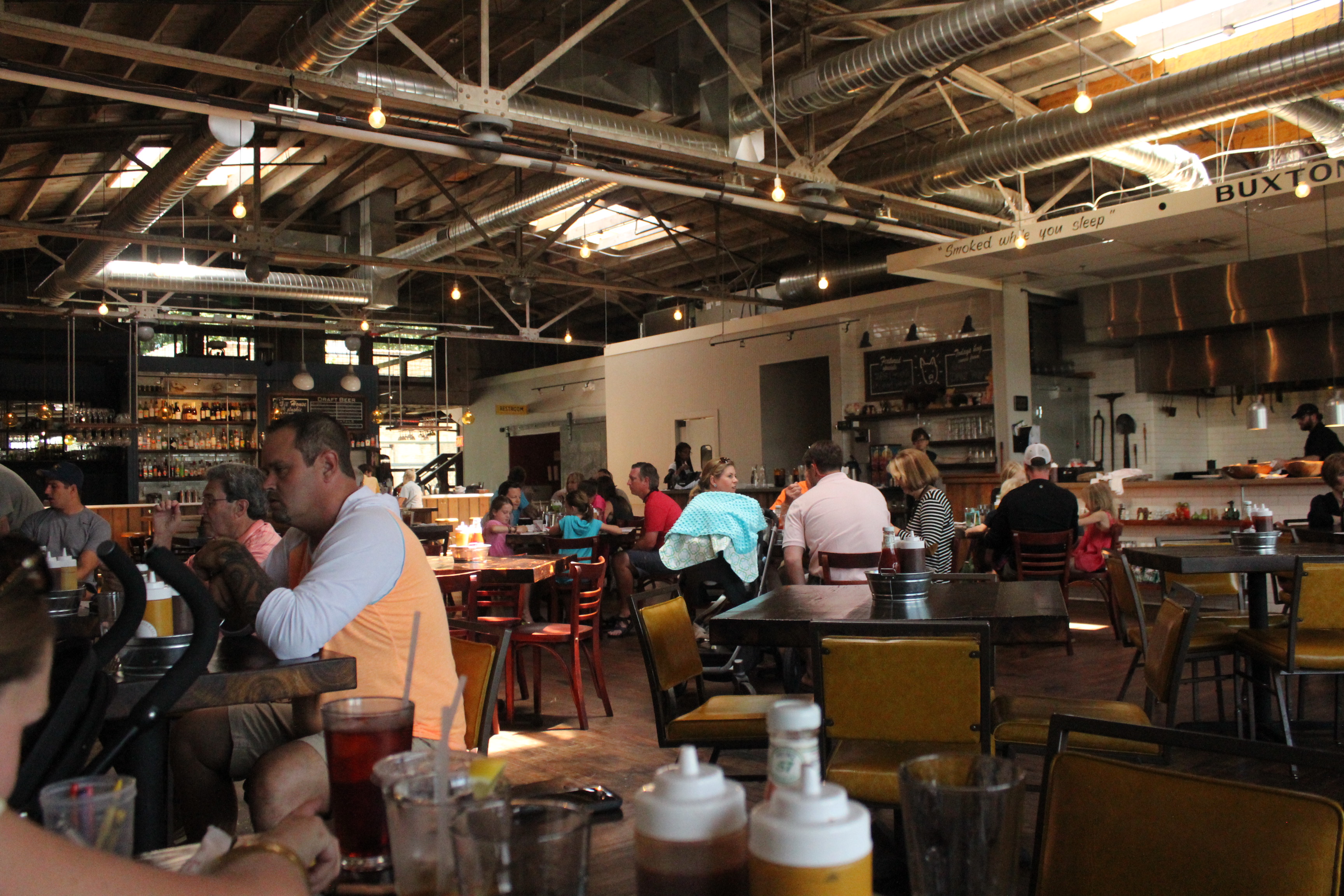 After our meal at Buxton Hall on Father’s Day, I was able to meet up with Pitmaster Elliot Moss at nearby Burial Brewing. After chatting a bit over a beer, he was gracious enough to take me and the Monk clan on a short tour of the kitchen and offices. Here’s those photos.