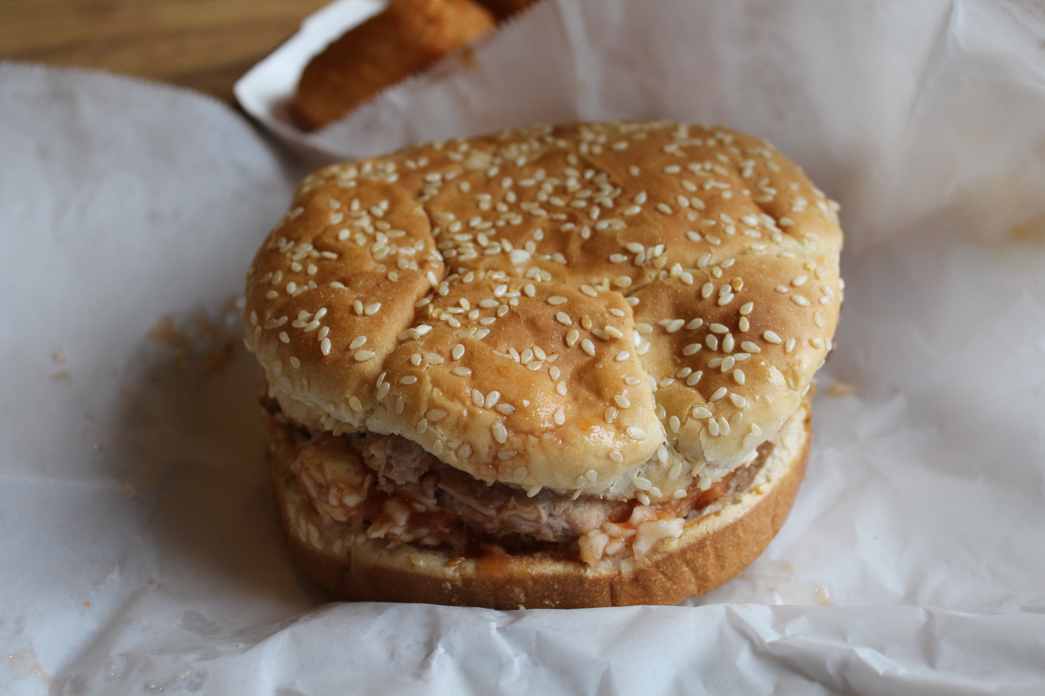 That alone would be worth the visit to Bar-B-Q King but thankfully the barbecue more than backs it up. They smoke their pork shoulders daily over hickory coals and hand chop the pork each morning. I would call their style pretty closely aligned to Lexington-style, though they do offer a white slaw option. The sandwich I got was fantastic – the chop was not too coarse, the pork was tender and smoky, and the red slaw accentuated it all perfectly.