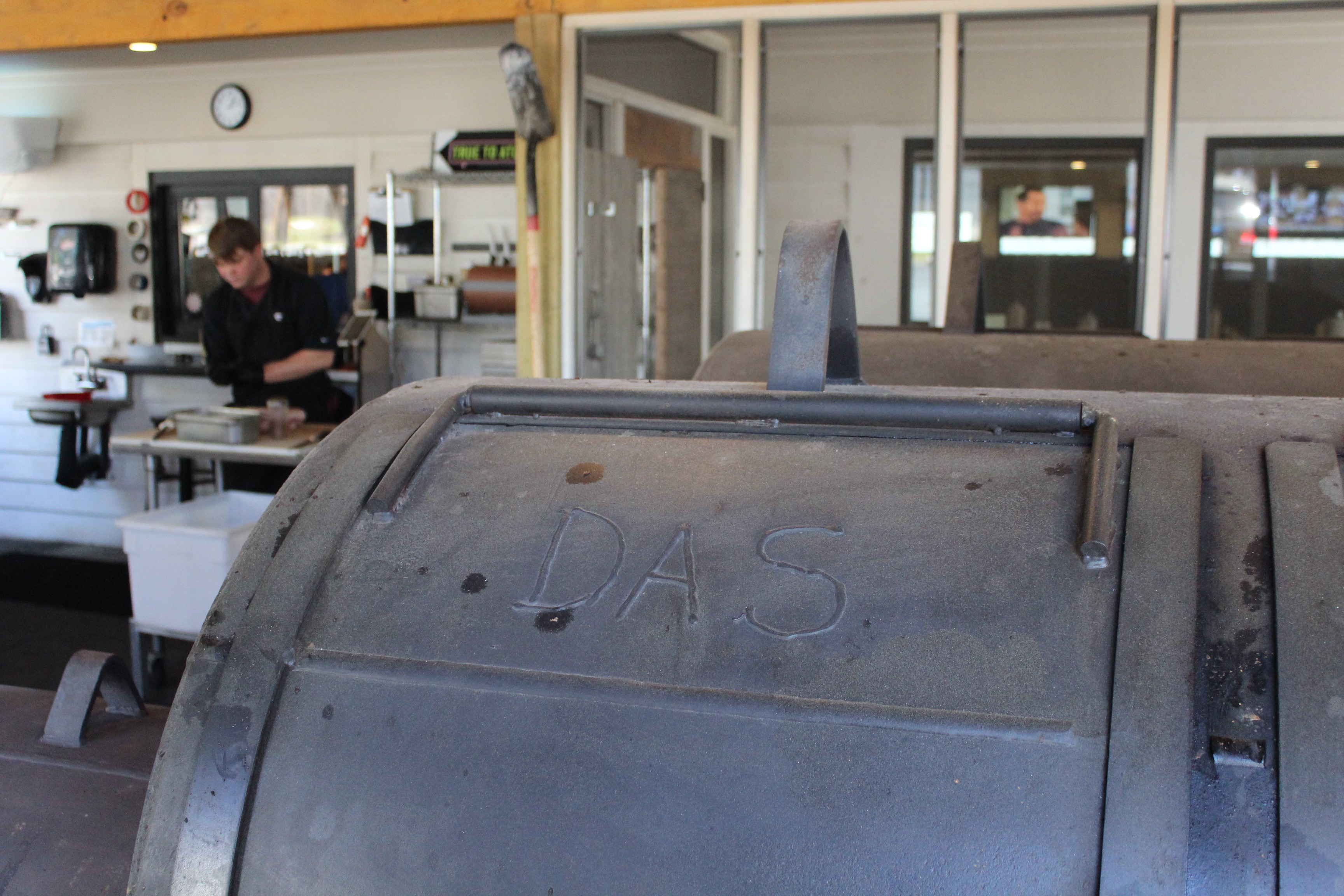 In that open pit room are housed two offset smokers that were supposedly made to the specs of those found at Franklin Barbecue. But instead of the post oak they use in Texas, Das uses a mixture of hickory and pecan wood that are more appropriate to Georgia. Meats are smoked in those smokers for about 5 hours before finishing in a Southern Pride Rotisserie, allowing for a certain amount of automation (if not what some might consider a shortcut).