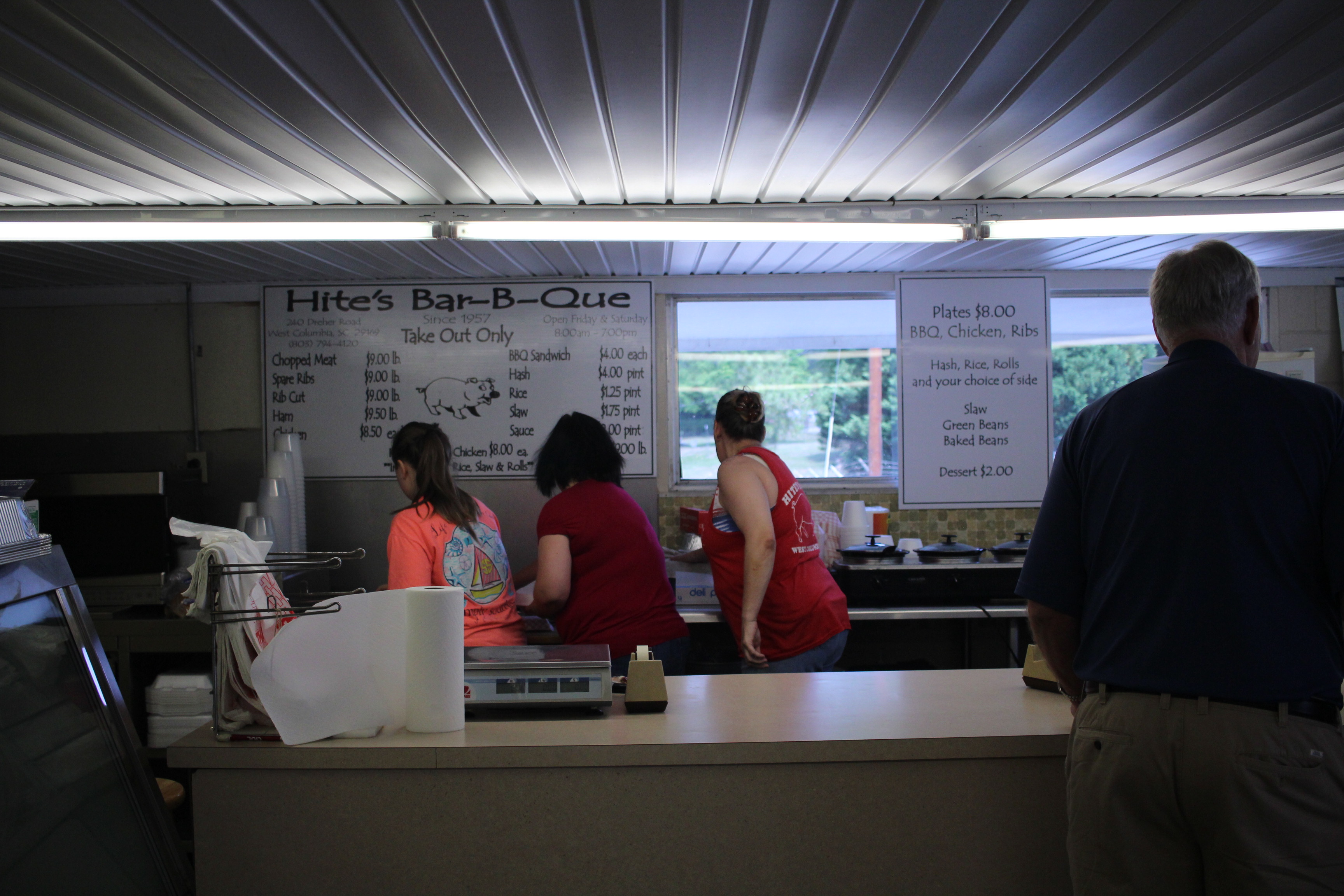 Hite’s is a takeout only joint run out of a simple cinder block building but does have a few picnic tables overlooking a small lake on the property which apparently has 3 generations of Hite’s living on it.