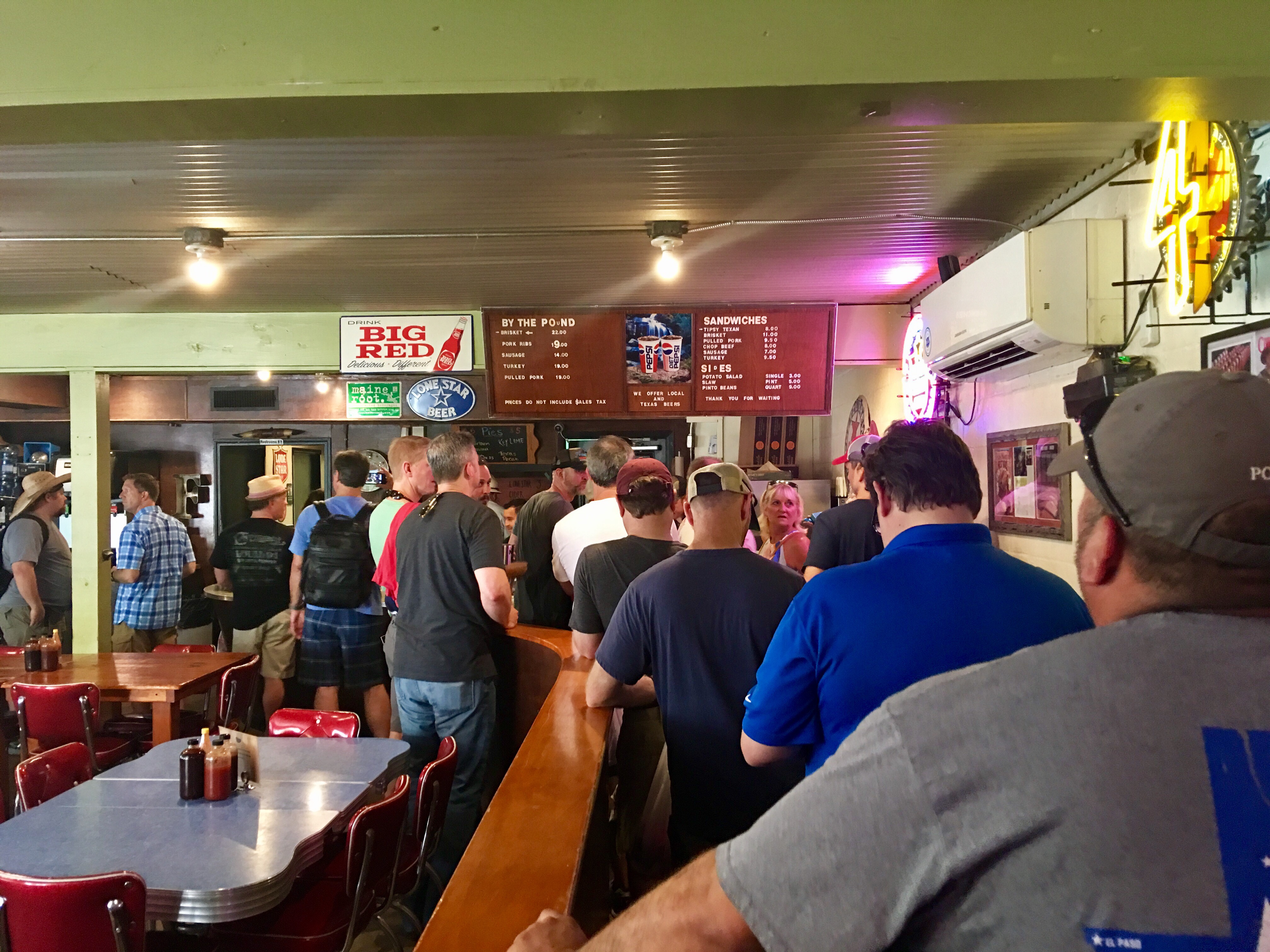 Speedy: Less than 24 hours after my excellent visit to La Barbecue, I was ready to get back at it, this time to the legendary Franklin Barbecue. Rudy dropped me off at 6 AM to get in line and went to take care of some things at work, re-joining me about 8. Getting there that early, I expected to be first in line, but in reality, there were three groups and about 12 people in front of me. Fortunately, I was still there in plenty of time to be shaded for my entire wait, which was hugely clutch. I spent most of the time sitting in a tailgate chair and sipping Lone Stars, so all-in-all, it was a pretty good morning.