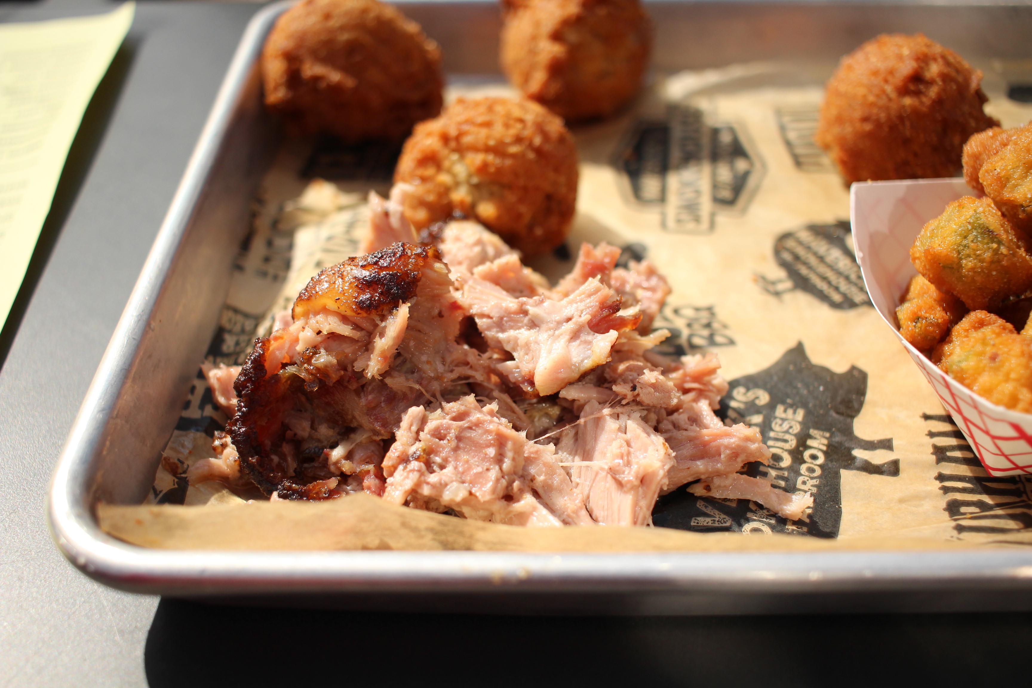 Finally, on this day the sides weren’t going to save the meal. While the hush puppies and fried okra (also sampled from our friend’s plate) were freshly fried and actually decent, the collards could have use some more stewing and the mayo-based cole slaw was lukewarm. Temperature in general seems to need more focus at Maverick’s.