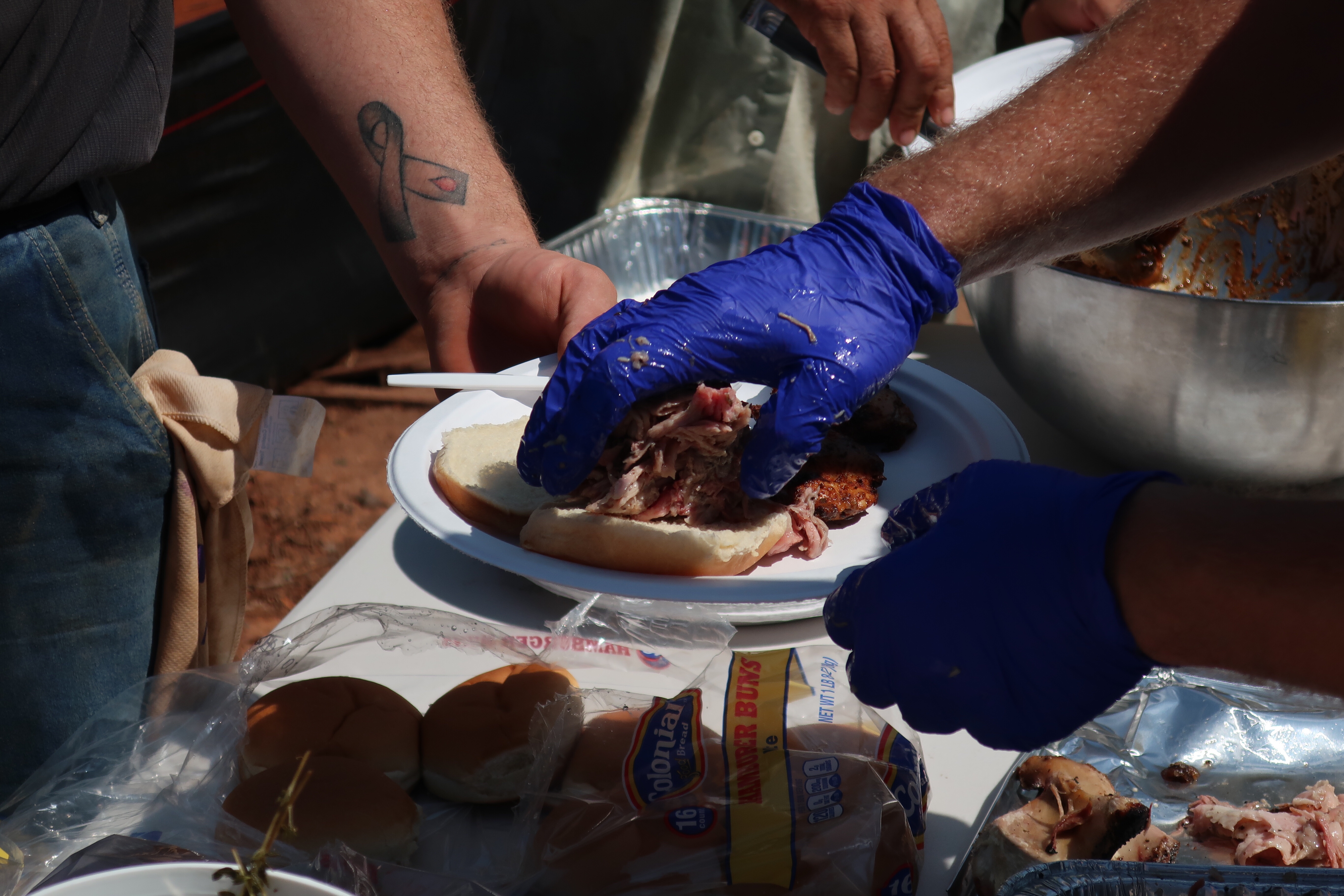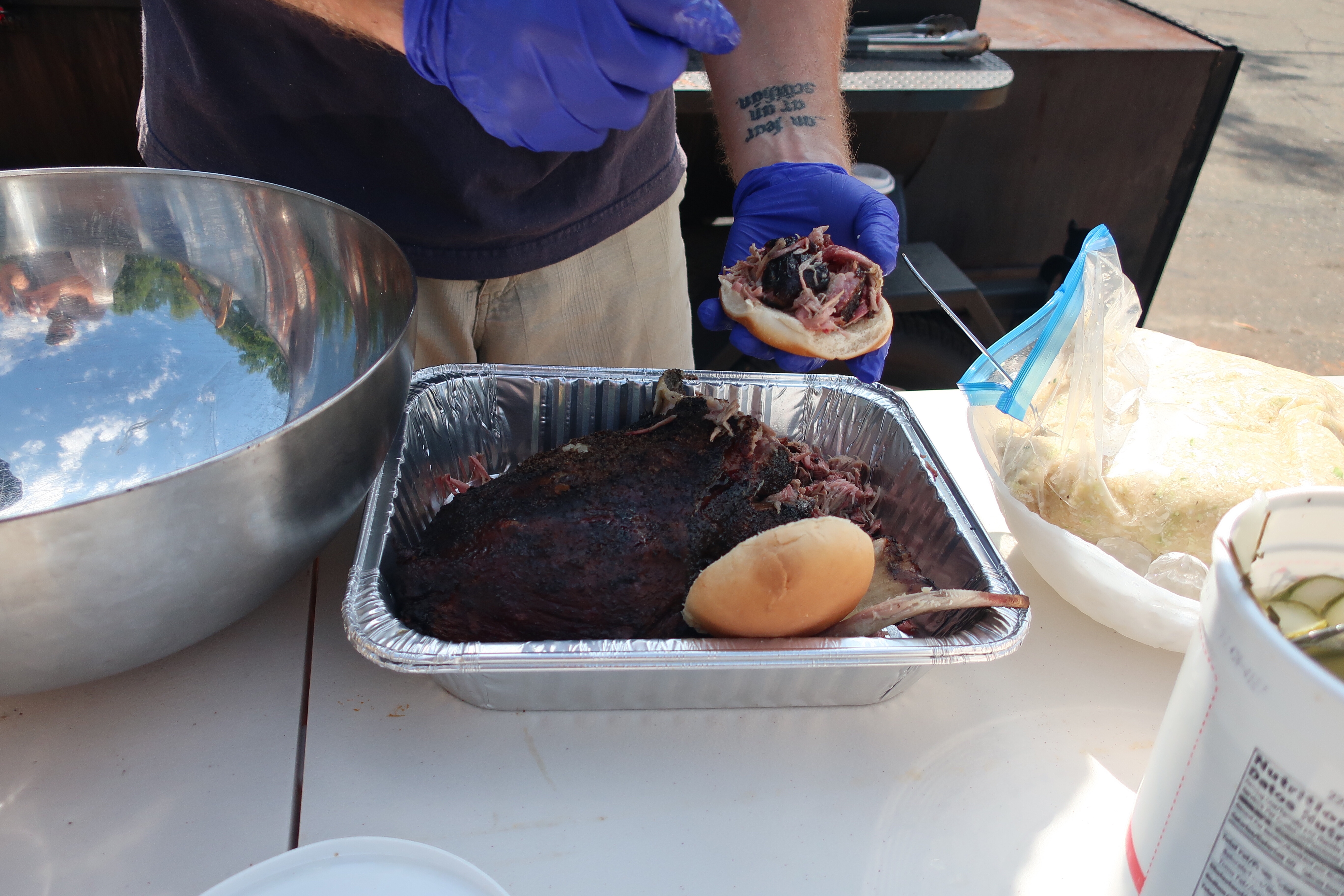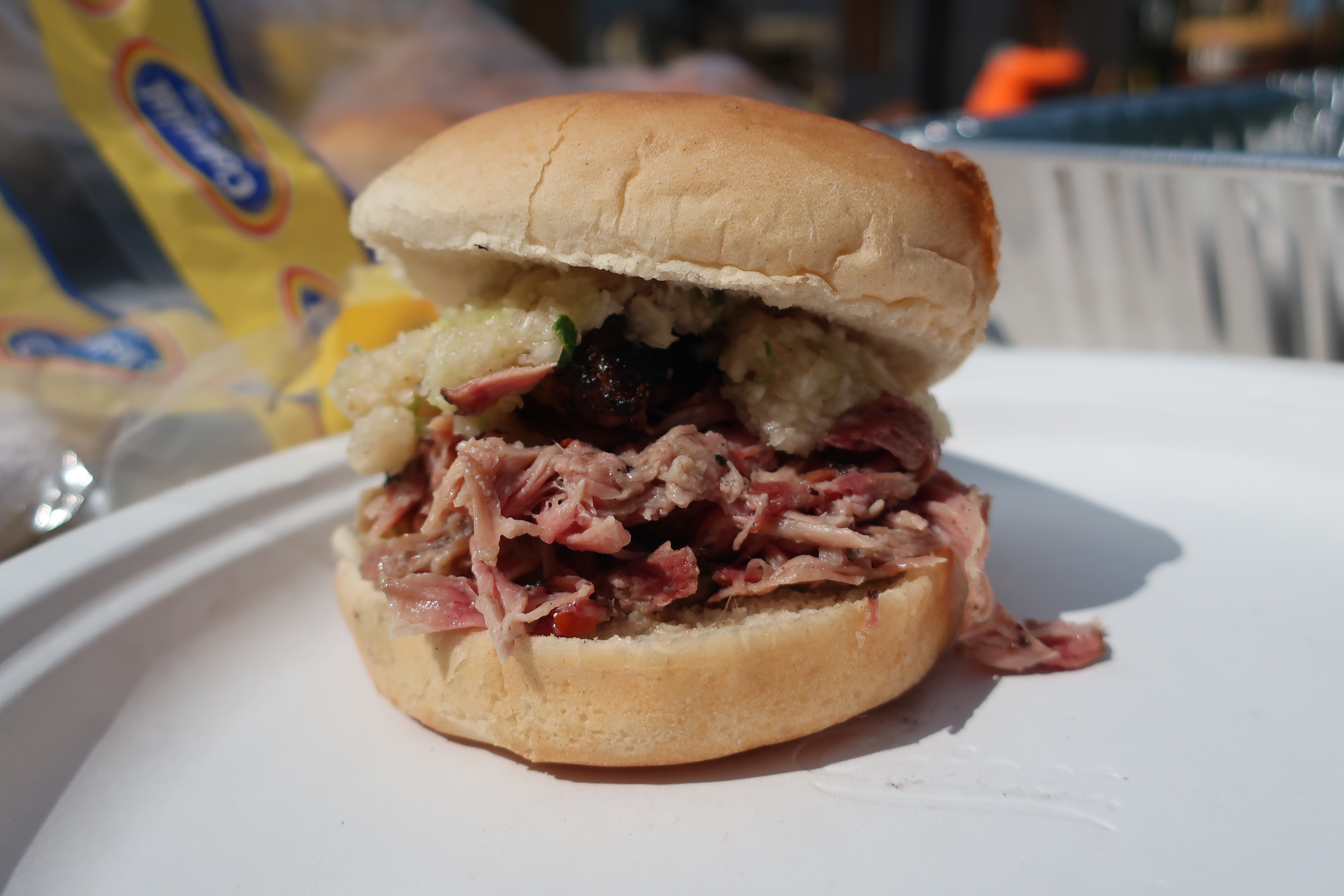 The sandwich I tasted a few weeks back was NC barbecue at its simplest perfection. Hand-pulled pork shoulders mixed with Lewis’s vinegar-pepper sauce, topped with a vinegar slaw, and placed onto a simple white hamburger bun. Sure, I had the benefit of having it prepared freshly off the smoker in front of me, but the process is simple enough that I am expecting the same quality once the restaurant opens.