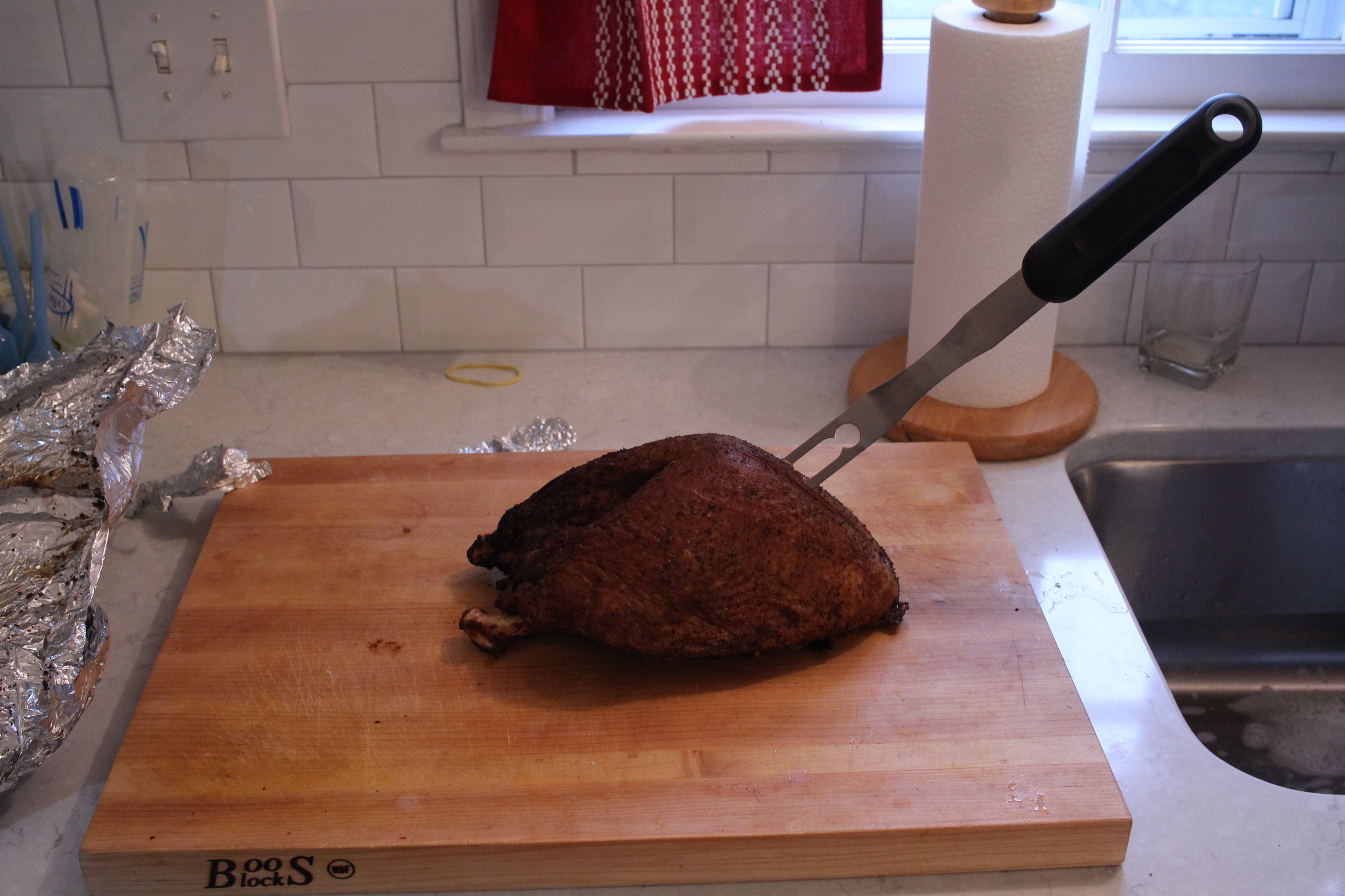 A complaint in some Weber Style grill tools I got years ago was the fact that it didn’t come with a carrying case and the individual tools in the set could easily get separated from one another. This BBQ tool set from Maverick does have a carrying case, and its a nice heavy duty bag at that. The stainless steel fork, spatula, and tongs included in this set are all high quality and handled the rigors of moving the brisket and turkey breast on and off the smoker and onto the tray and cutting board with ease. And bonus! It also comes with a digital instant thermometer in the vein of the Thermapen that gets a temp reading within a few seconds. A very nice set.
