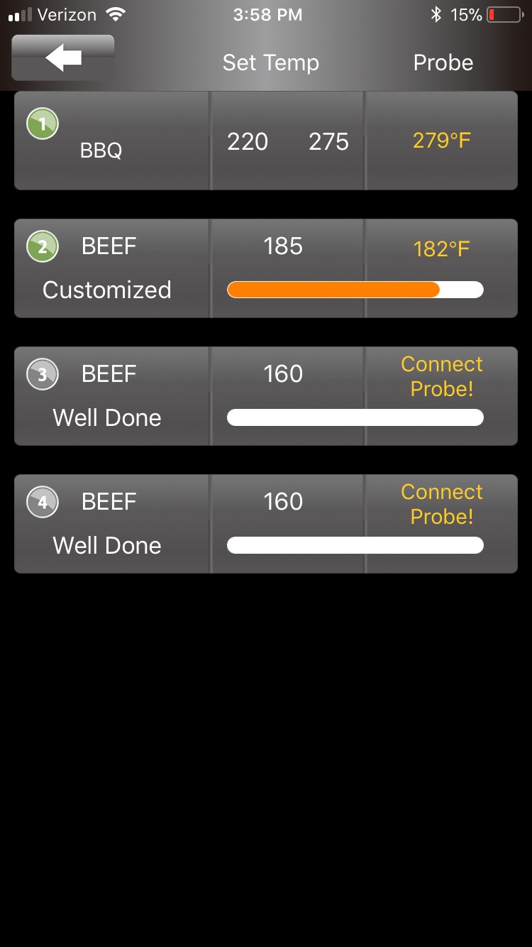 On my own dime, I’ve used previous models of the wireless meat thermometer from Maverick, but the bluetooth version is pretty slick. It has the same unit that connects to the probes that attach to the grill surface and meat. But instead of a separate unit that reads out the temperatures and sets alarms if the temps start to fall out of range, I downloaded the Redi Check app from Maverick which accomplishes the same thing. Instead of having to keep up with the other unit to monitor temperatures, I was able to just keep my phone on me as I normally do.