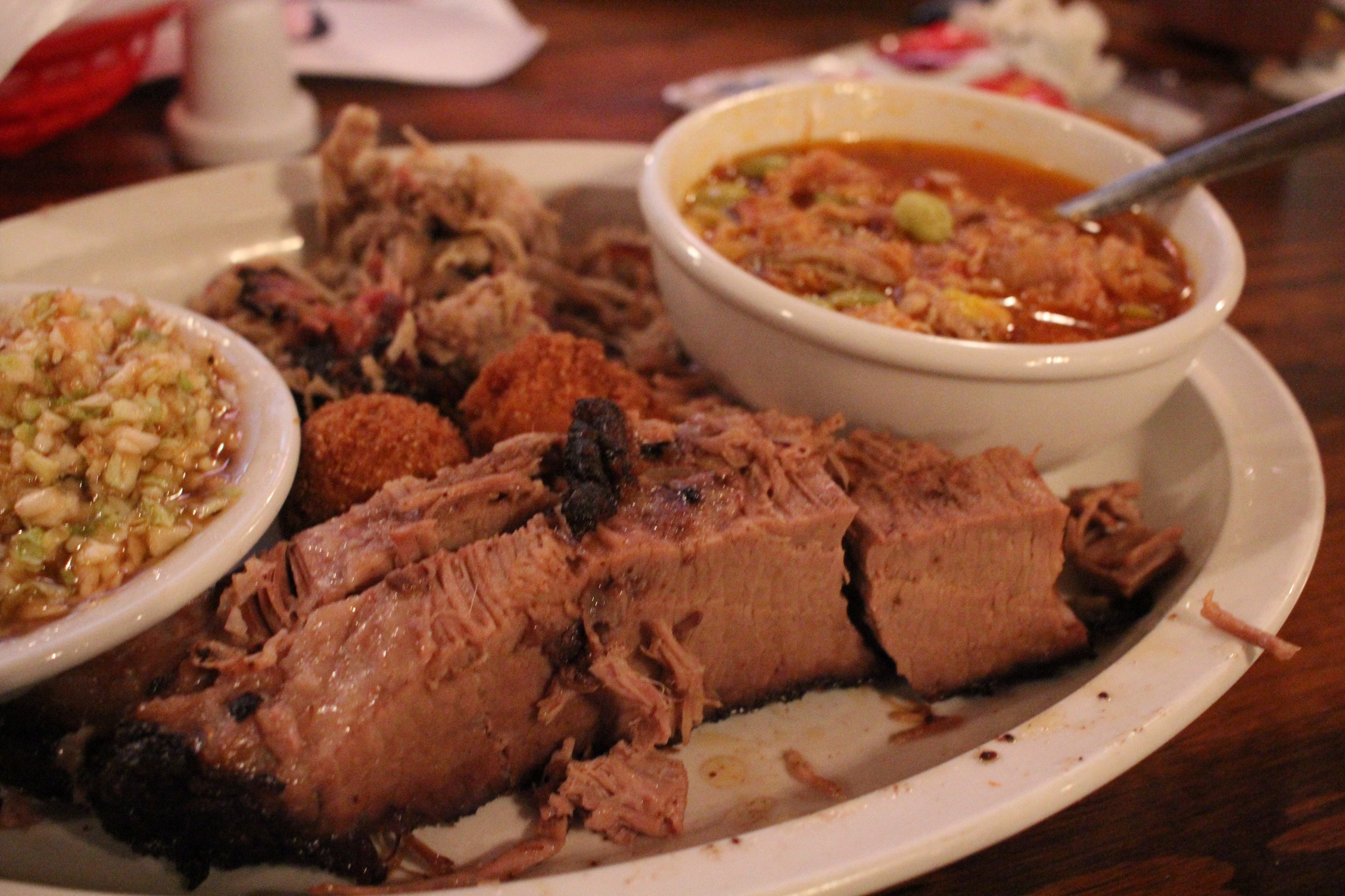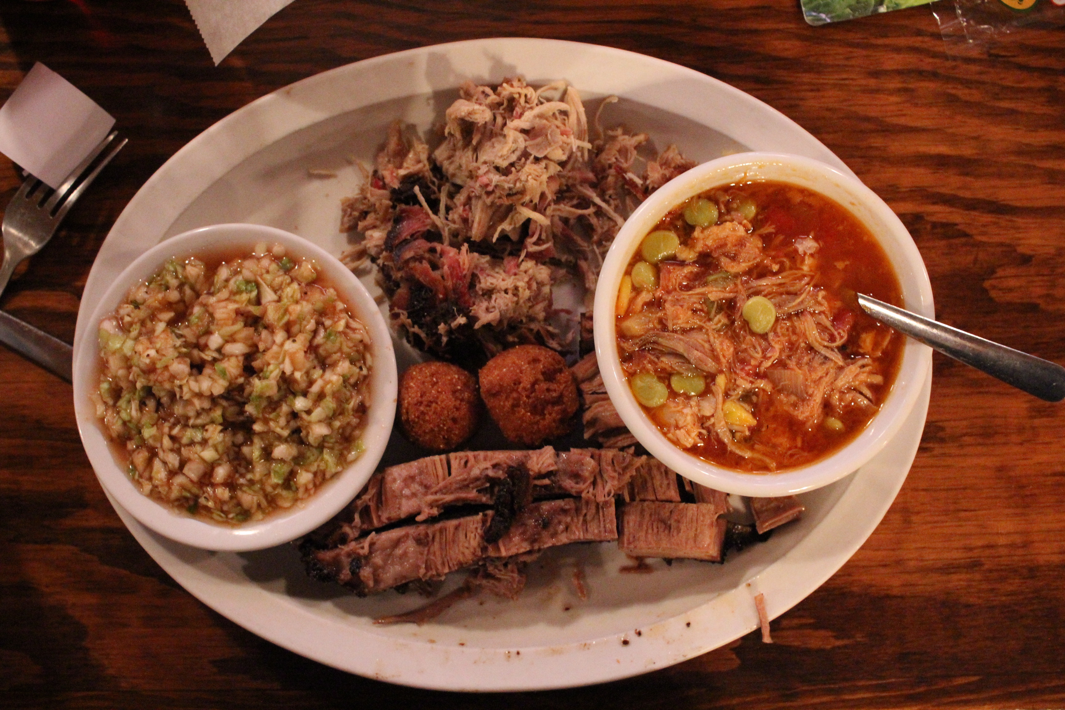Order: Half pound brisket plate with brunswick stew and BBQ slaw (link to menu)