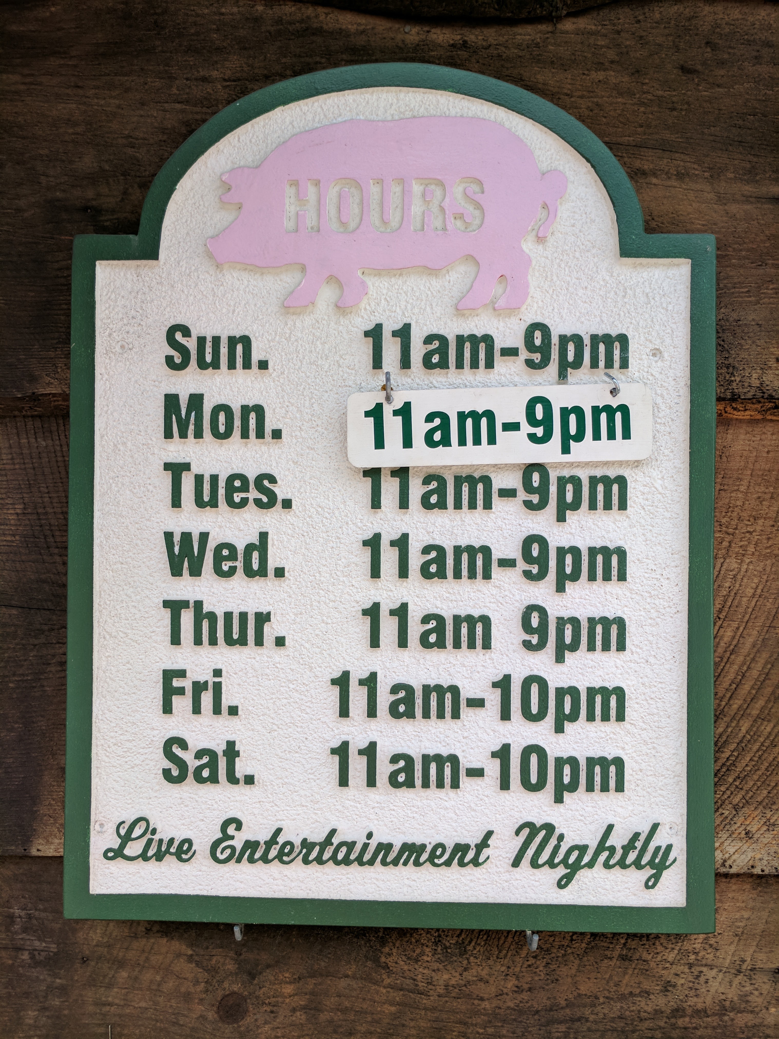 Speedy: I actually do want to mention the sides, Monk, because the collards were terrible. Throw some pork or bacon in there, people! Overall, however, it was a mostly pleasant dining experience, despite the fact that we had to deal with an obnoxious Yelper while we were eating (Hi, Dan! Also, thanks for the photos!). Would I recommend as worthy of going out of your way to try? No way, but I’d consider stopping in at Woodlands Barbecue and Pickin’ again should I return back to Blowing Rock.