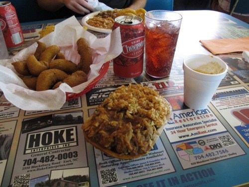 Heading west, Shelby is a town about 45 minutes from Charlotte and home to two competing barbecue restaurants under the name “Bridges” – Alston Bridges Barbecue and my pick, which has been and always will be Red Bridges Barbecue Lodge (website) right off 74. This joint, a recent winner of both the Thrillist and Garden & Gun March Madness Barbecue Brackets in back-to-back years, is a pretty true representation of Lexington-style barbecue smoked over handchopped wood logs (check the enourmous wood pile out back).
