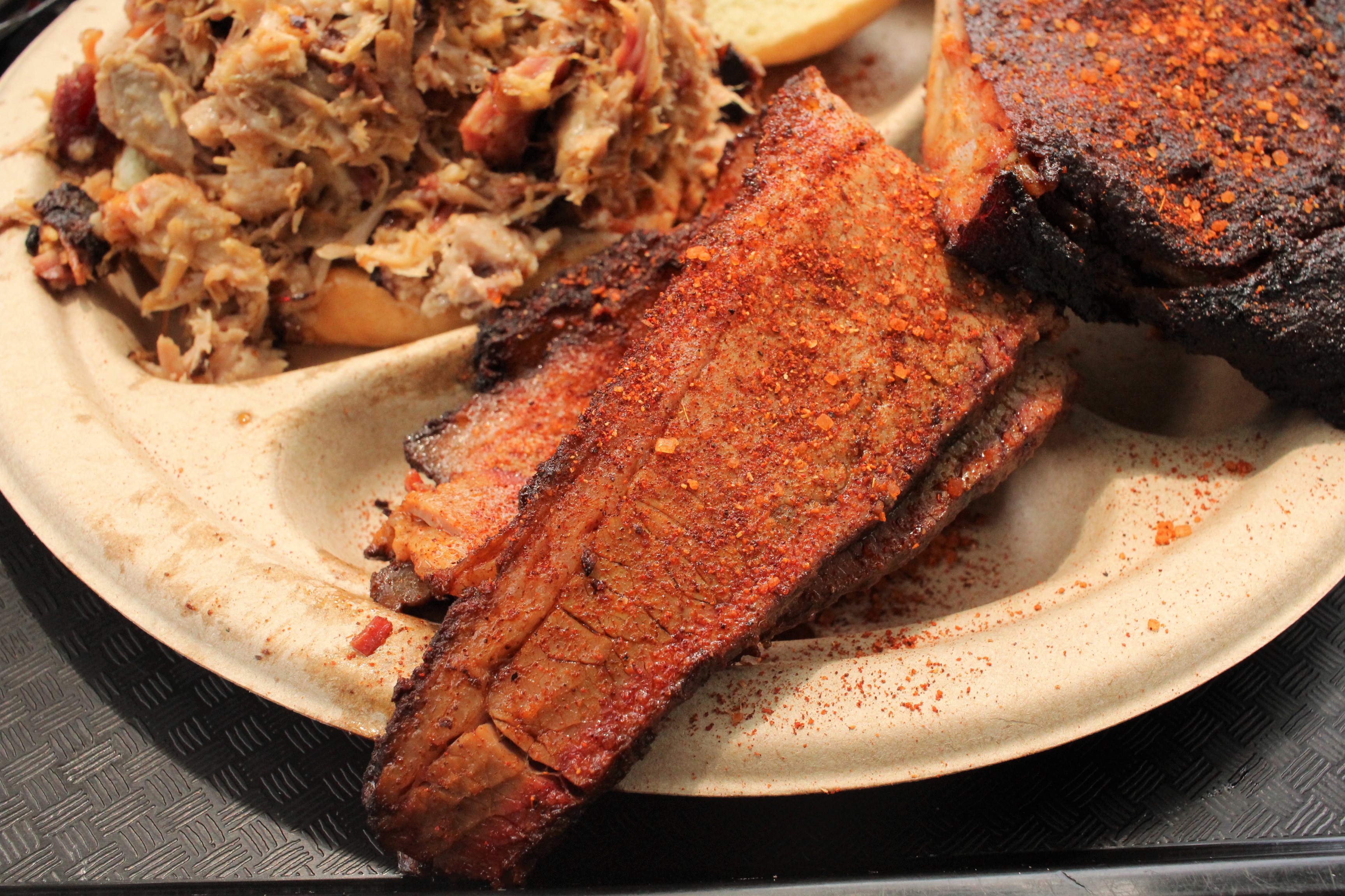 The ¼ rack of ribs were better than the brisket while still being just slightly above average. It was also sprinkled with the same rub as the brisket, though this harkened to more of a Memphis dry rub so didn’t bother me as much as the brisket. They weren’t overdone and pulled away from the bone properly with each bite.
