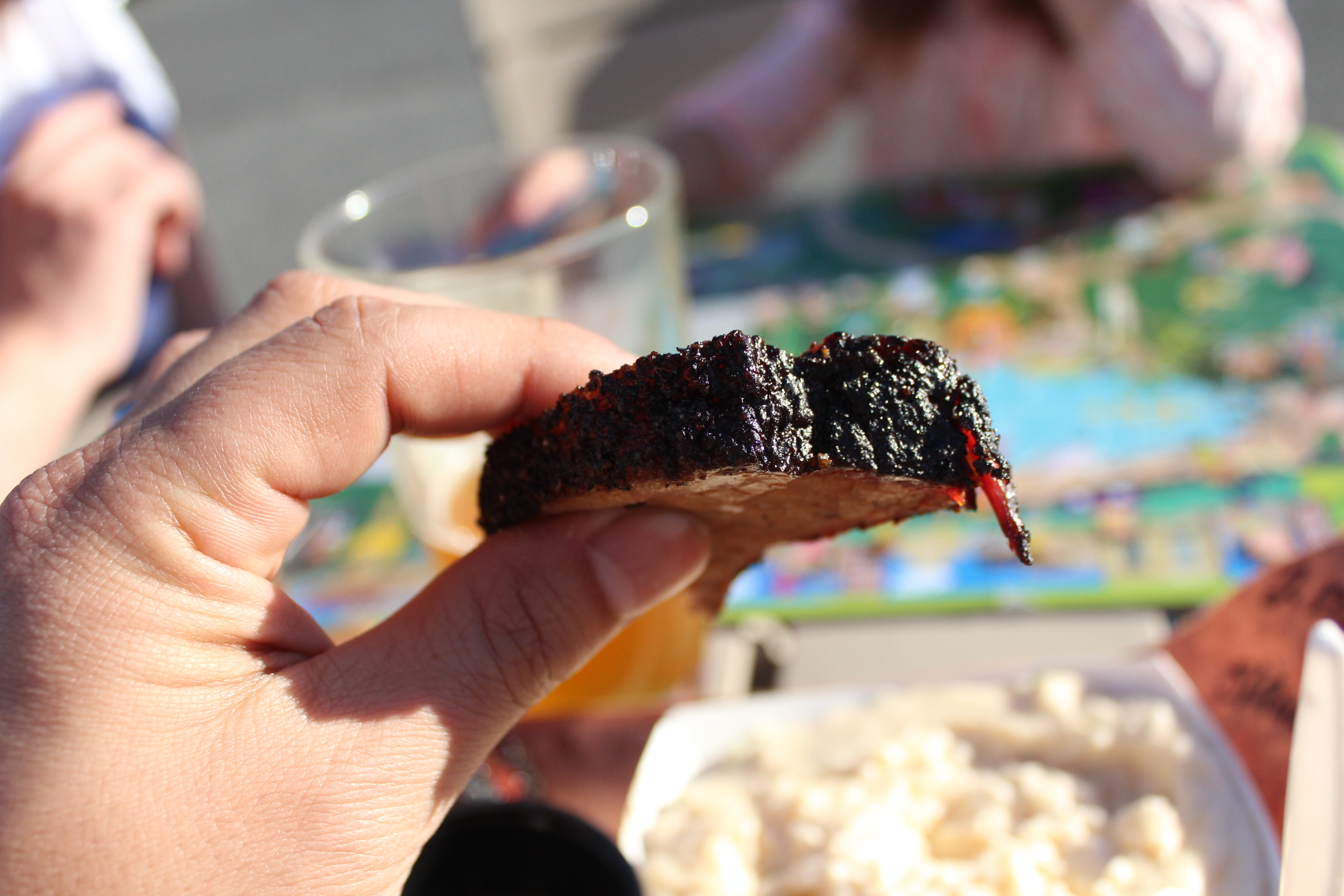 While Garren has clearly focused on his brisket, his pork doesn’t suffer in the least. He smokes Boston butts and the coarsely pulled strands of pork were tender and flavorful. It did not require any sauce but one of the three available was an eastern NC vinegar sauce and it paired well with the pork.