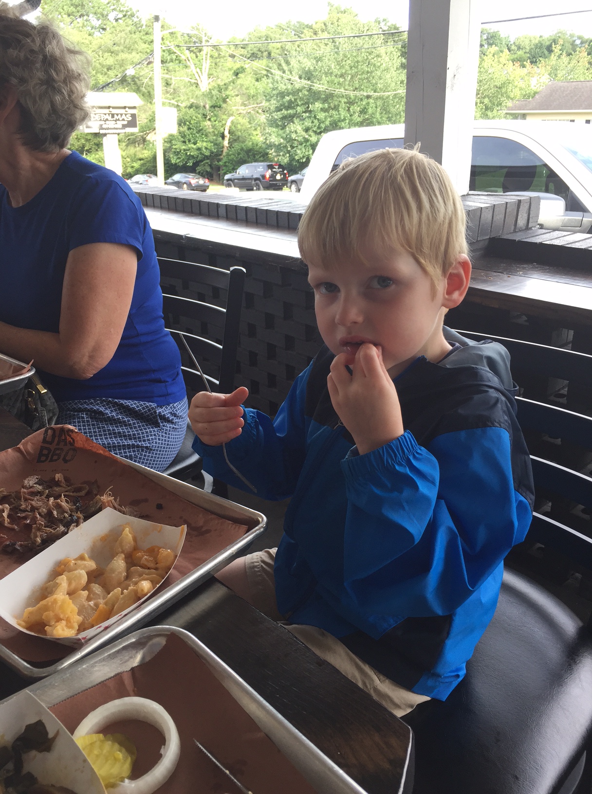 Rudy: The pork was moist and flavorful. Nothing too special about it, but still very good. I liked it more than the sausage and Rudy Jr definitely did. He opted to eat a decent amount of it before turning his attention to the mac & cheese (priorities).