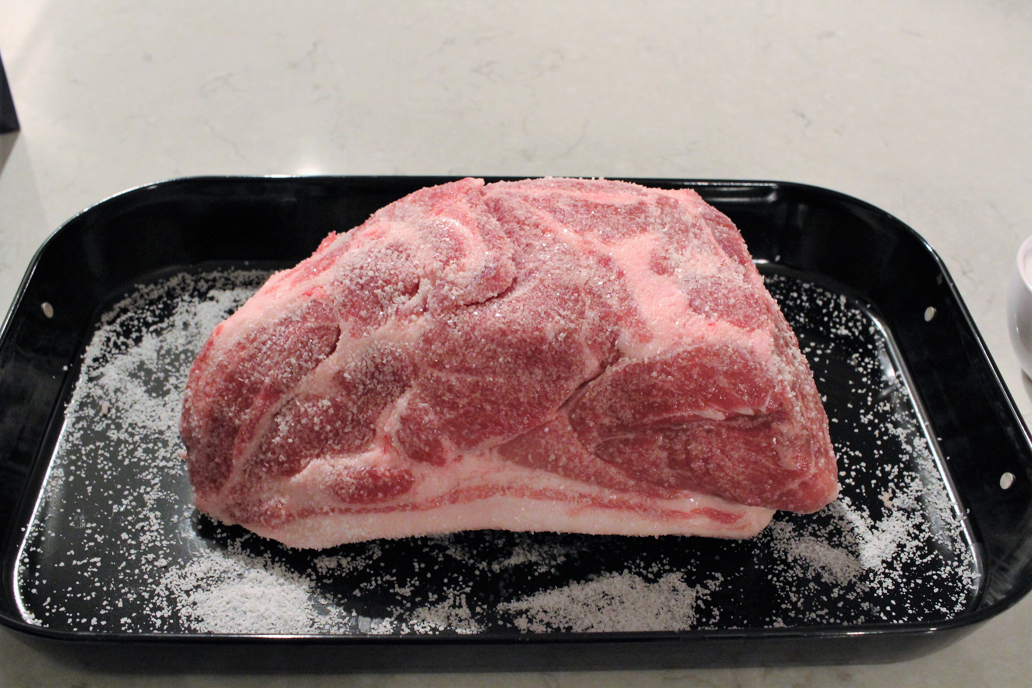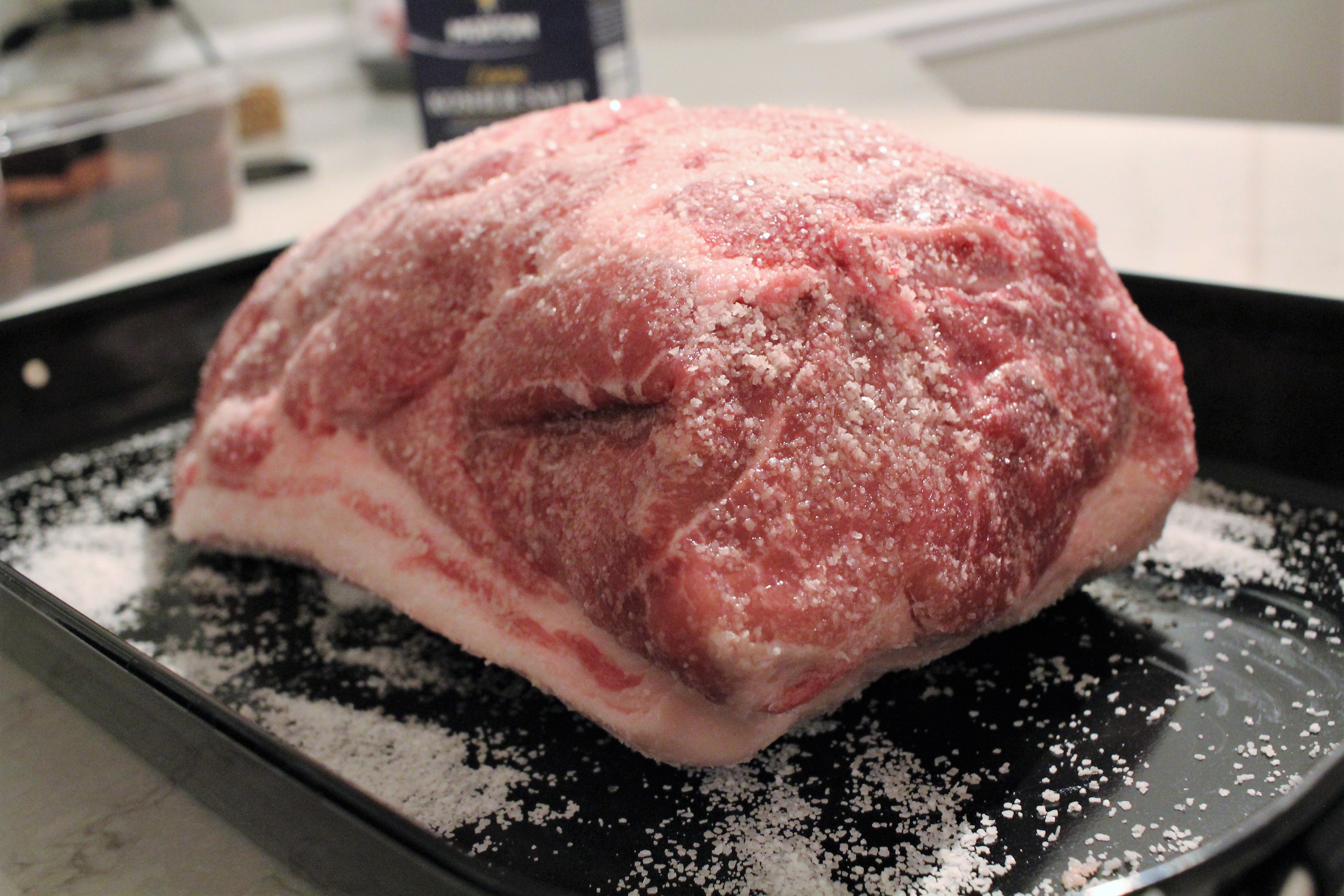 On that page, in terms of rub it states “Rub the exposed side of the meat (not skin side) with a fair amount of salt. Set aside at room temperature.” And that’s it. I had to re-read a few times just to be sure I wasn’t missing something. No other spices, no overnight rub – this really was going to be a different technique than I was used to.