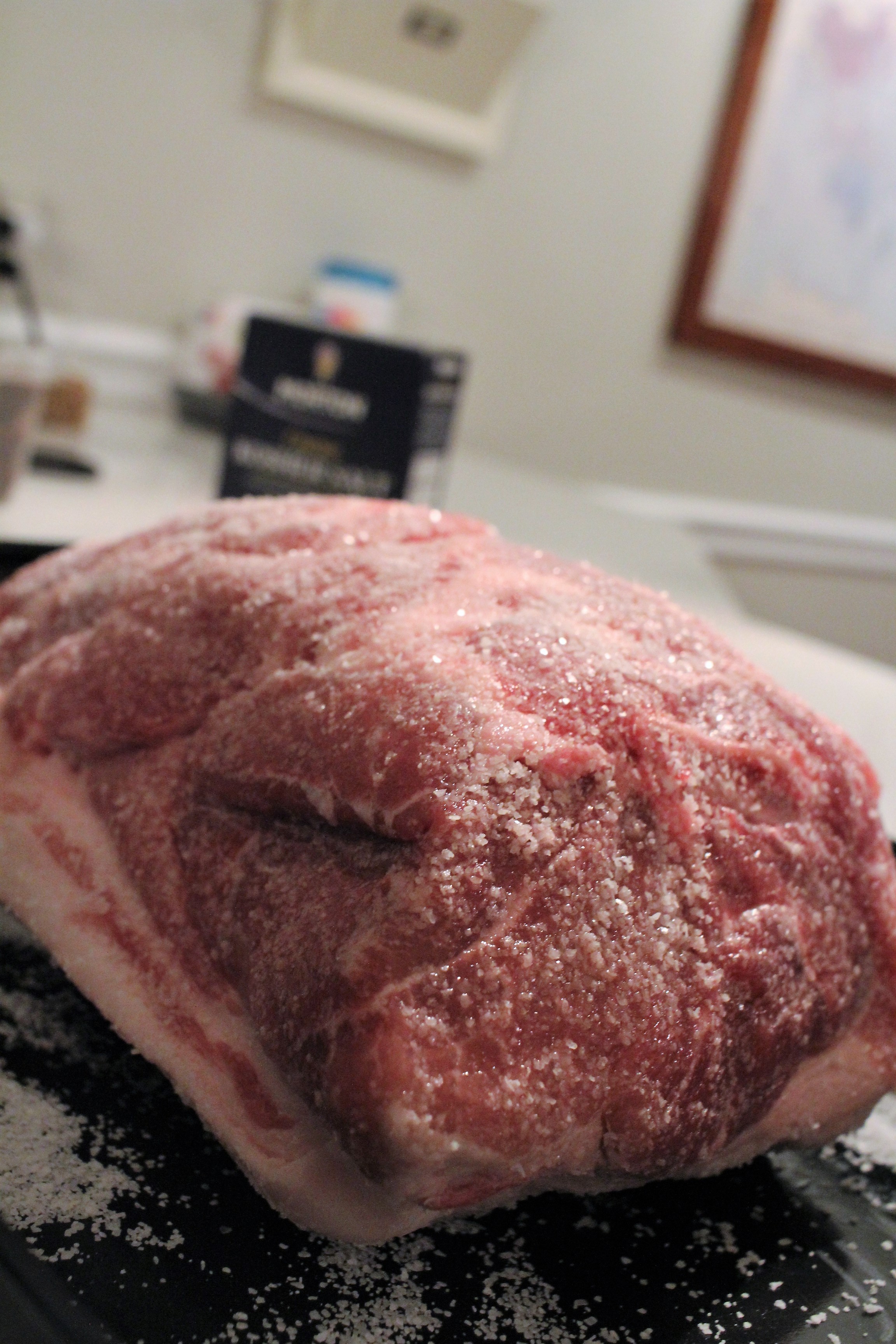 Doing a quick Google search, I found some corroborating evidence that salt only is indeed the way that the Lexington Barbecue rubs its pork butts (a second source here also somewhat verified it). So my mind was made up – I just hope it wouldn’t be a bust for our annual Super Bowl Party but it seemed so simple so what could go wrong? At least we had 100 takeout wings as backup.