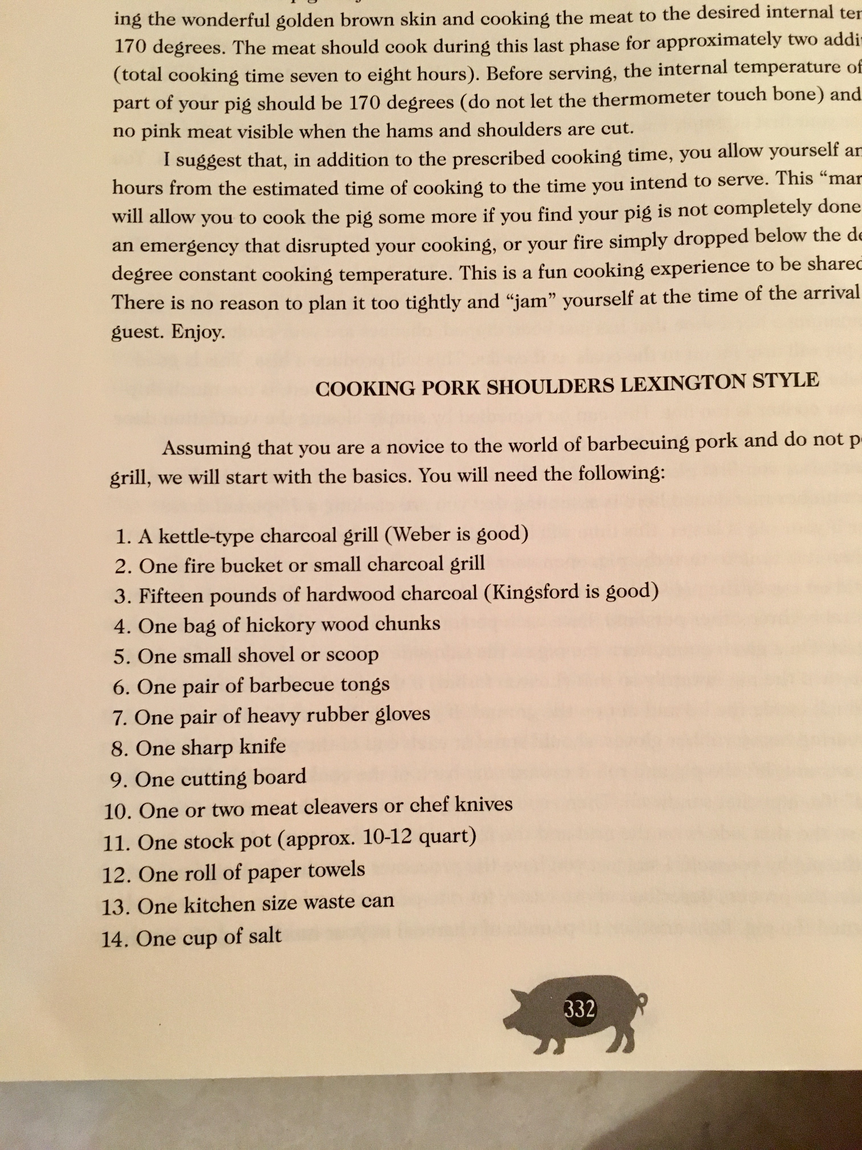 The NC BBQ Society’s website has been my go-to page for a Lexington-style dip recipe (that is, a thin barbecue sauce for those of you not in the know) the past few years (recipe here) while using a rub of my own (or Speedy’s) concoction. All these years, they’ve had a recipe for “Cooking Pork Shoulders Lexington Style” just a little further down the page that I’ve been ignoring. Turns out this is actually a transcription of a recipe from the book “The Best Tarheel Barbecue: From Manteo to Murphy” by NC BBQ Society founder Jim Early, which I just so happen to own. So I’ve really had no excuse not to try this technique before now.