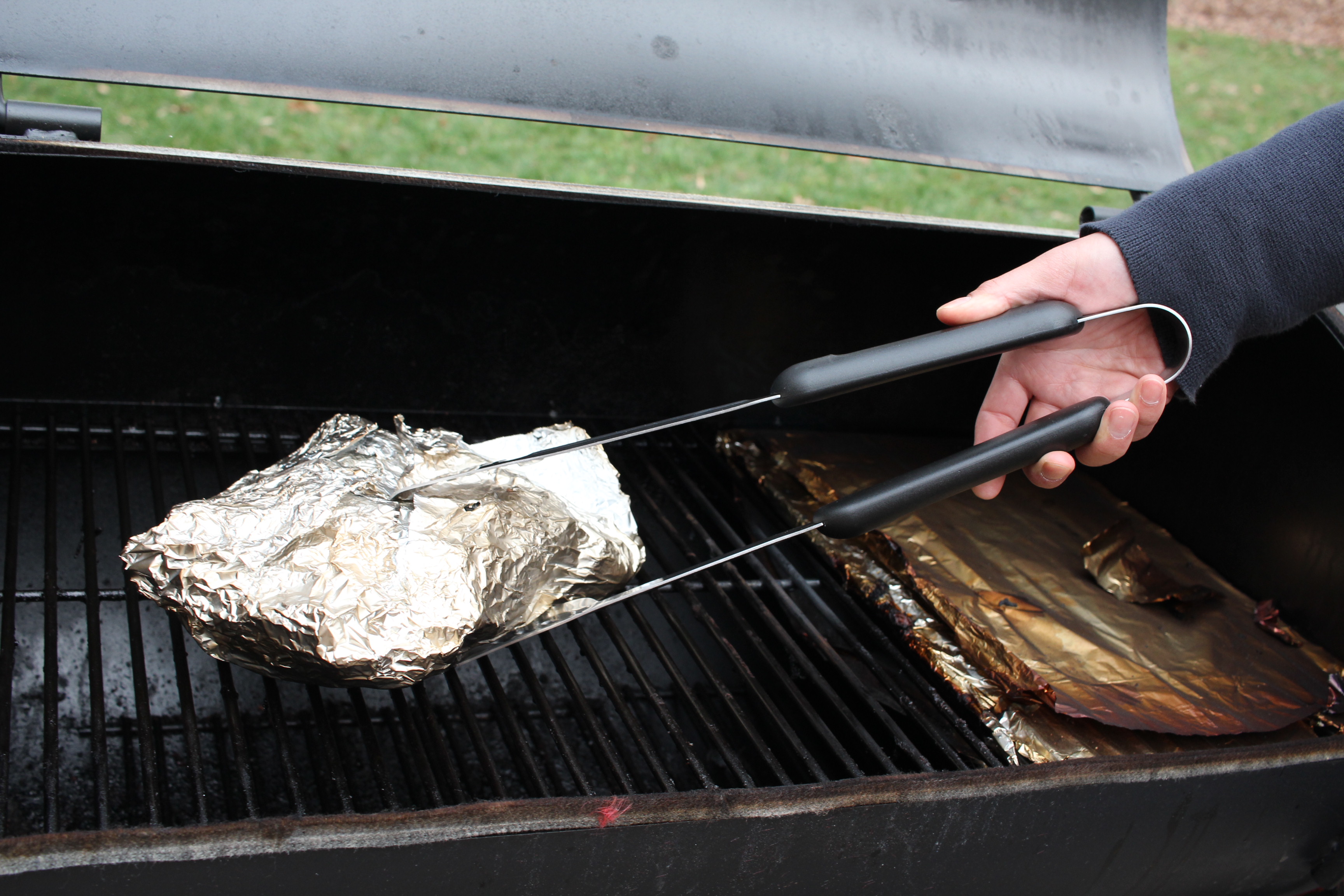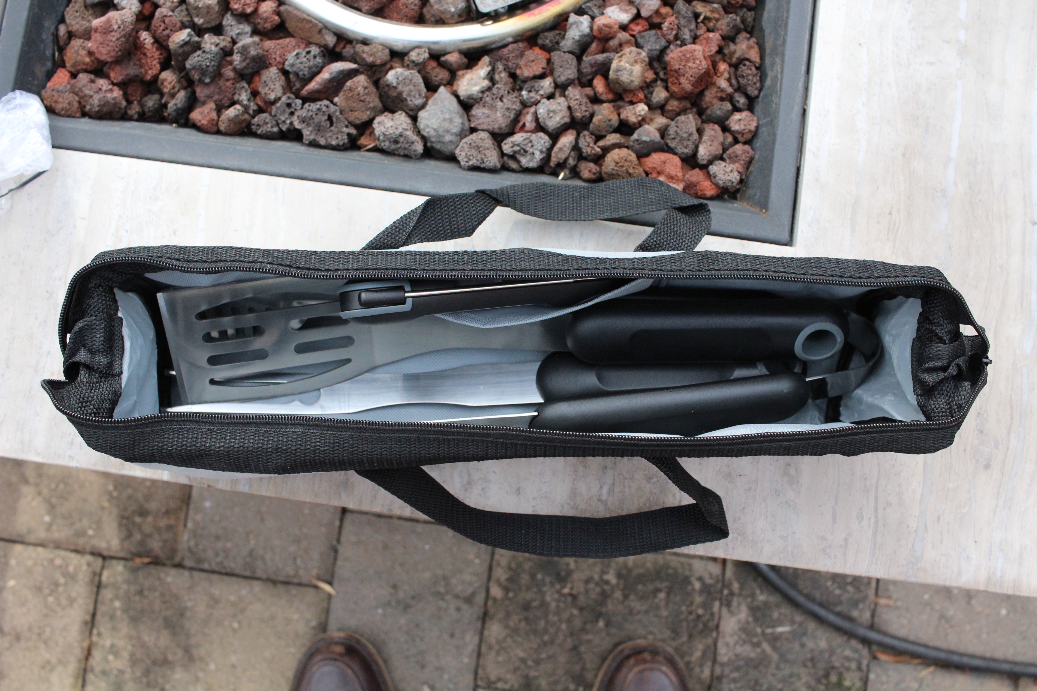 A complaint in some Weber Style grill tools I got years ago was the fact that it didn’t come with a carrying case and the individual tools in the set could easily get separated from one another. This BBQ tool set from Maverick does have a carrying case, and its a nice heavy duty bag at that. The stainless steel fork, spatula, and tongs included in this set are all high quality and handled the rigors of moving the brisket and turkey breast on and off the smoker and onto the tray and cutting board with ease. And bonus! It also comes with a digital instant thermometer in the vein of the Thermapen that gets a temp reading within a few seconds. A very nice set.