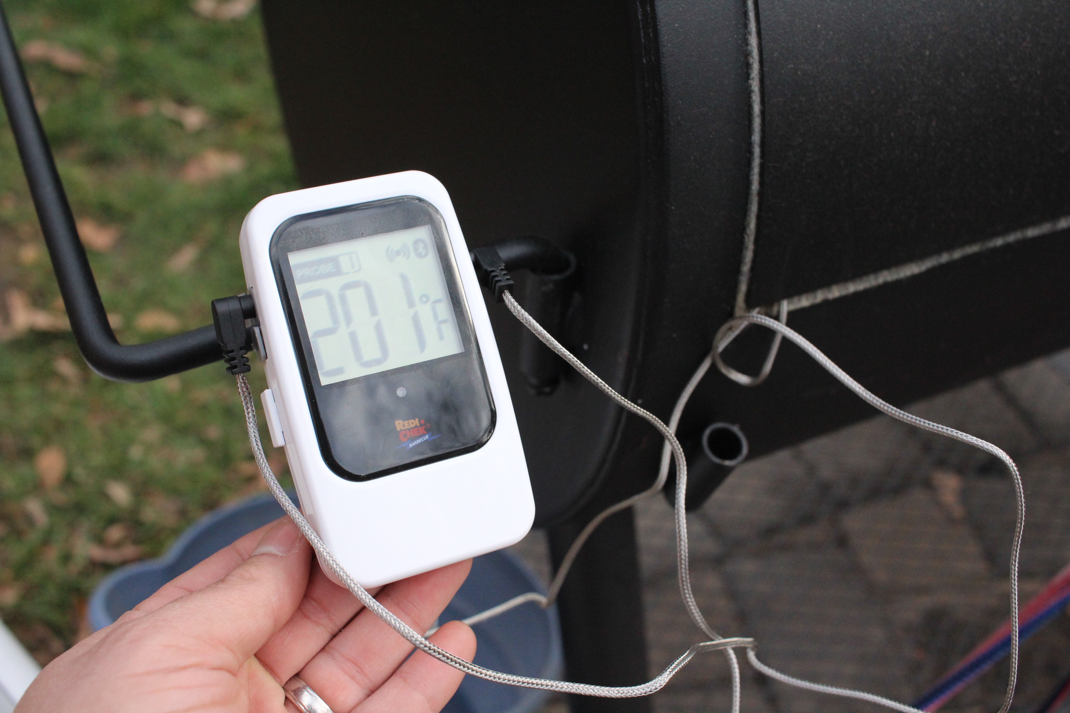 On my own dime, I’ve used previous models of the wireless meat thermometer from Maverick, but the bluetooth version is pretty slick. It has the same unit that connects to the probes that attach to the grill surface and meat. But instead of a separate unit that reads out the temperatures and sets alarms if the temps start to fall out of range, I downloaded the Redi Check app from Maverick which accomplishes the same thing. Instead of having to keep up with the other unit to monitor temperatures, I was able to just keep my phone on me as I normally do.